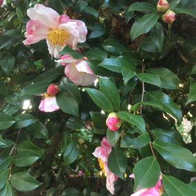 山茶花の花期は長く、十二月二十日の石鼎忌にも盛んに花を散らしては咲かせるので、